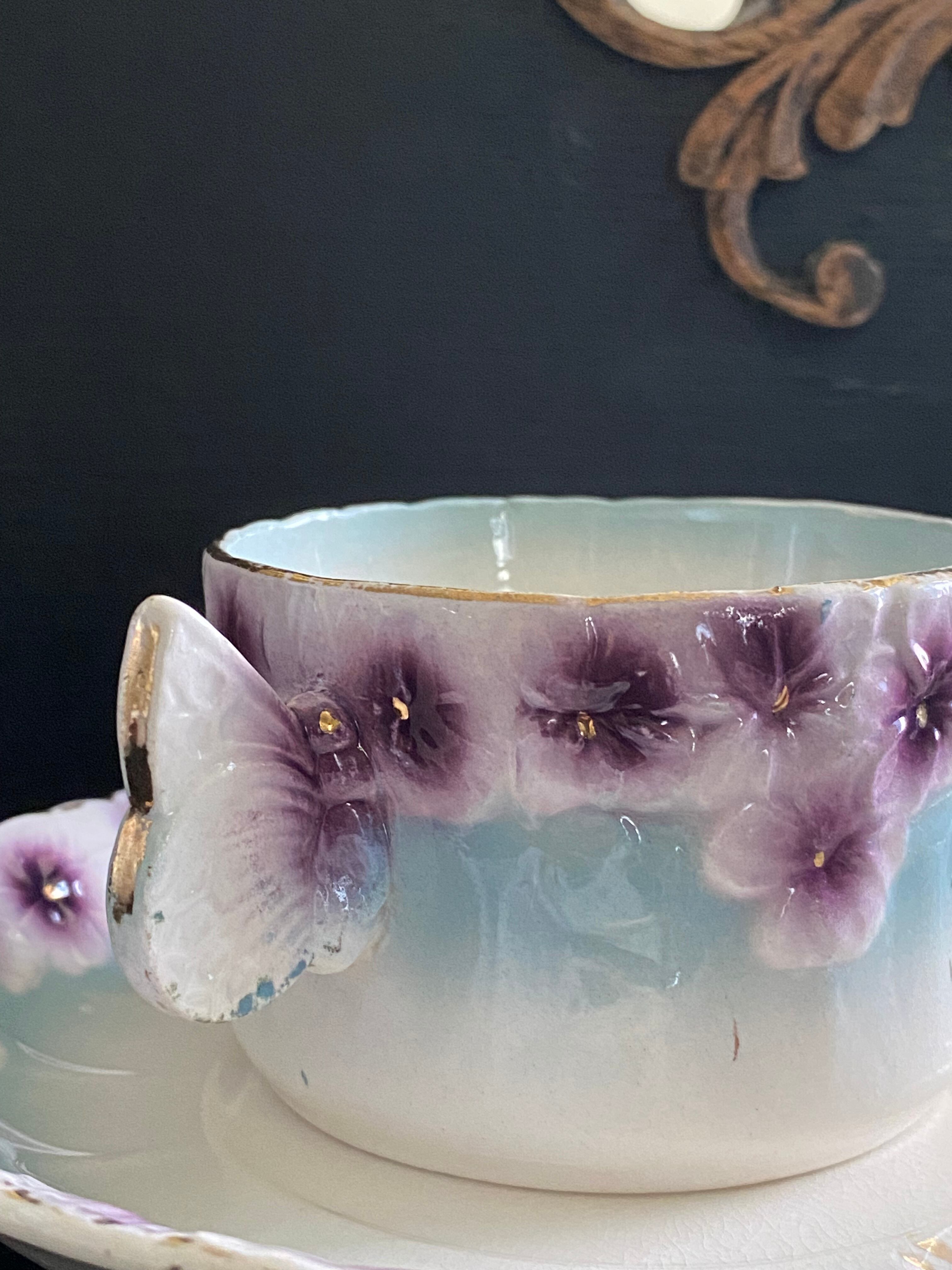 美品⭐︎スミレと蝶のバルボティーヌ*カップ&ソーサー 230924