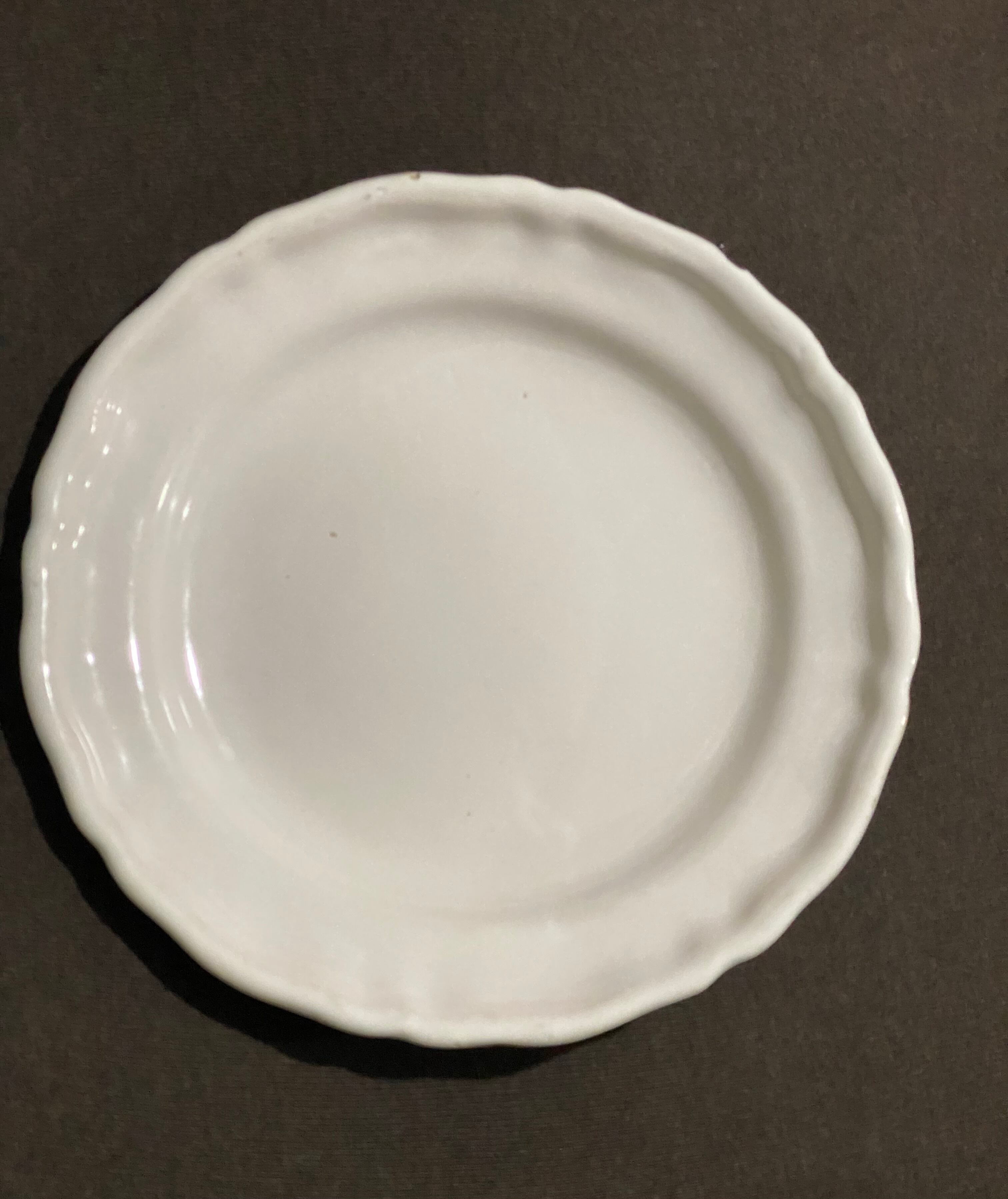 リム裏にカケ釉薬の剥がれがありますが、表からは見えないので個人的には気にならない美品です。カトラリー跡もほとんど見られないのでおそらく未使用かと思われます。