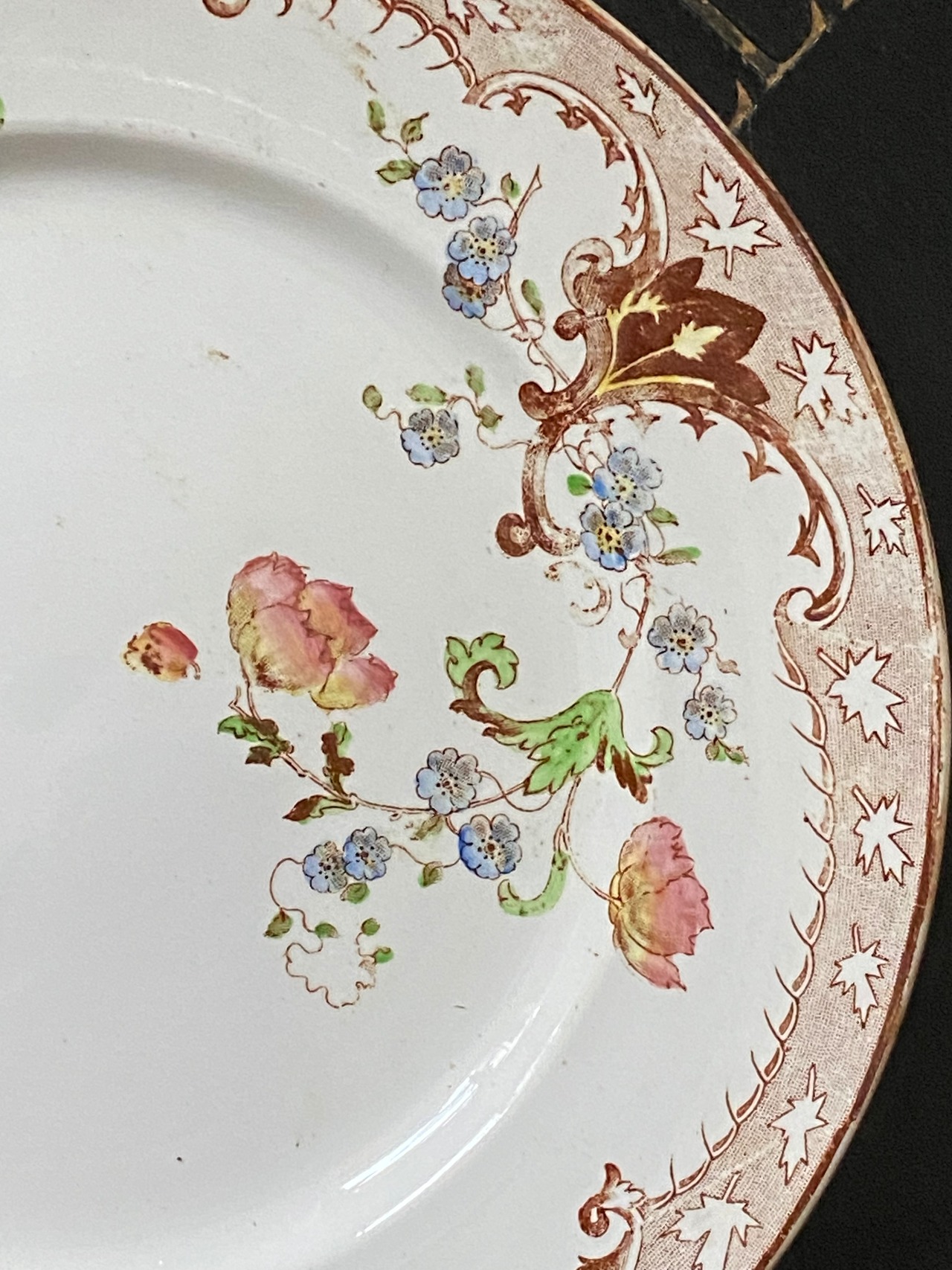 マロンカラーの繊細な絵付けにひとつひとつ手彩色された美しいアレクサンドラのシリーズ。