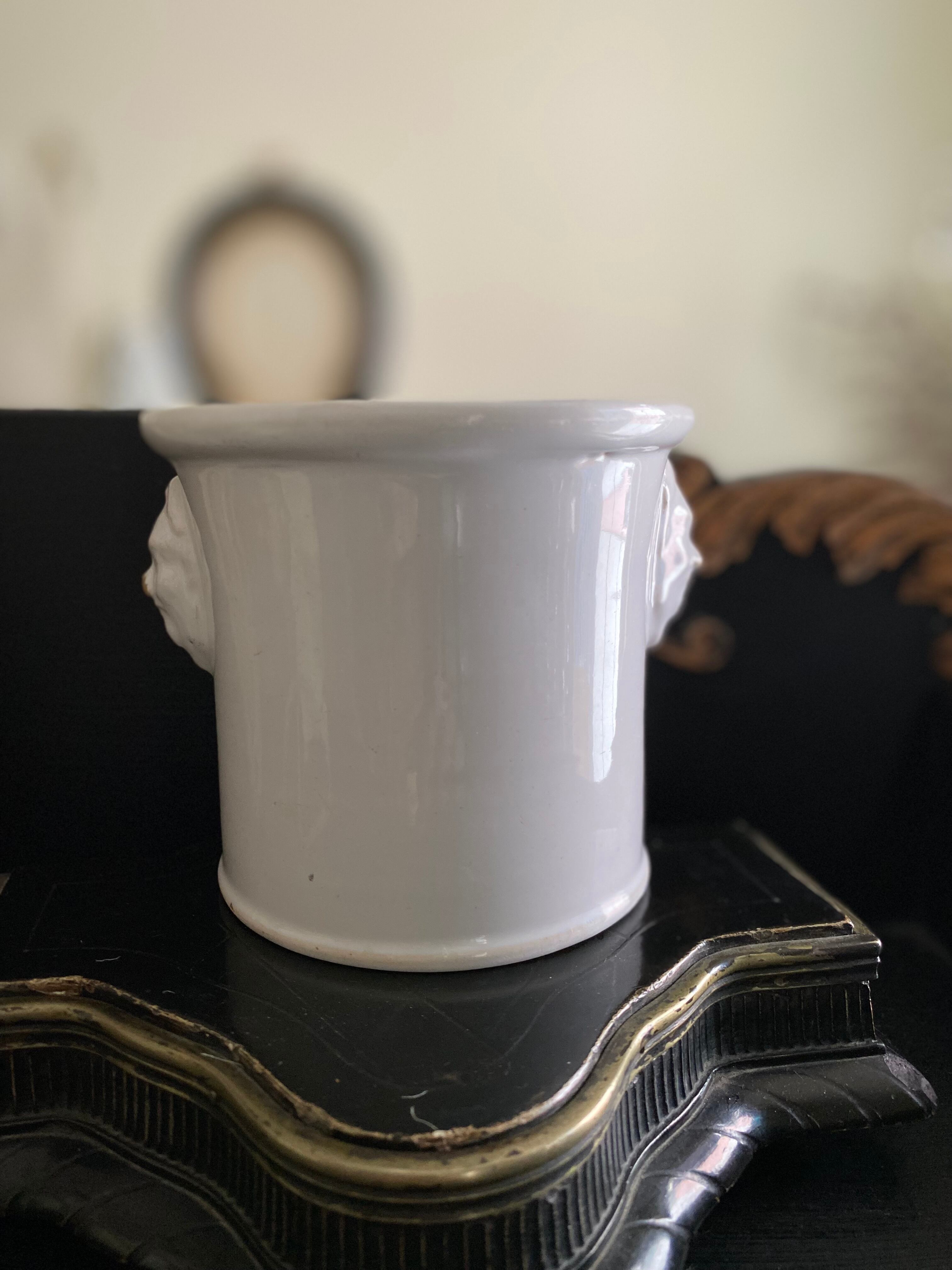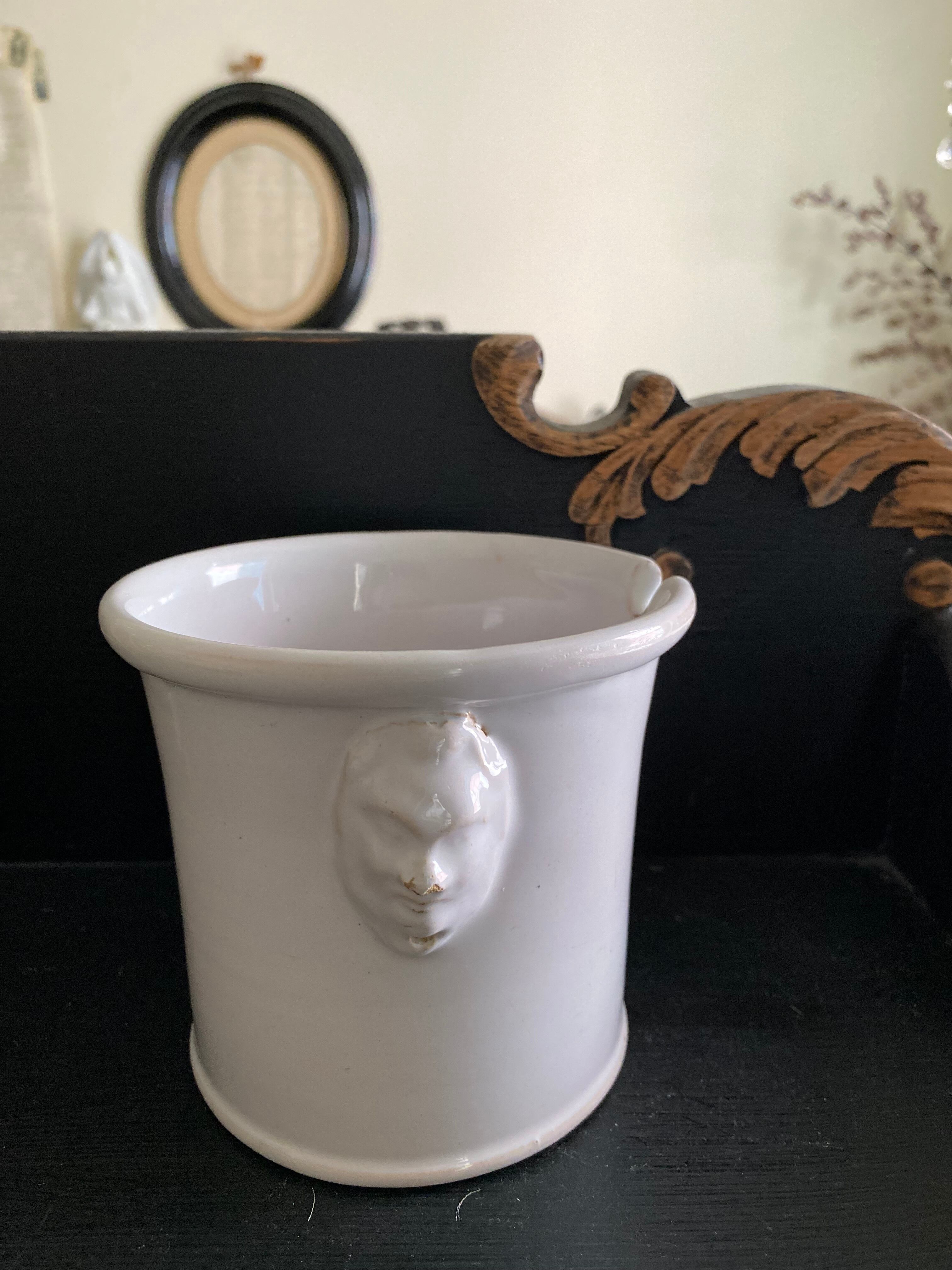 マスク付のポットは、ムスティエなど南仏ものにはあまり出会ったことがありません。更にこちらは切り込みの入ったレアなモデルで、初見でした。