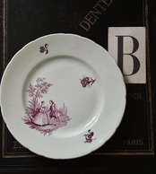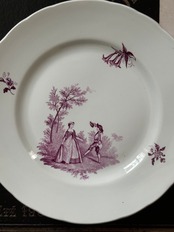 クレイユモントロー *花リム デザートプレート/ 赤紫トワルドジュイ