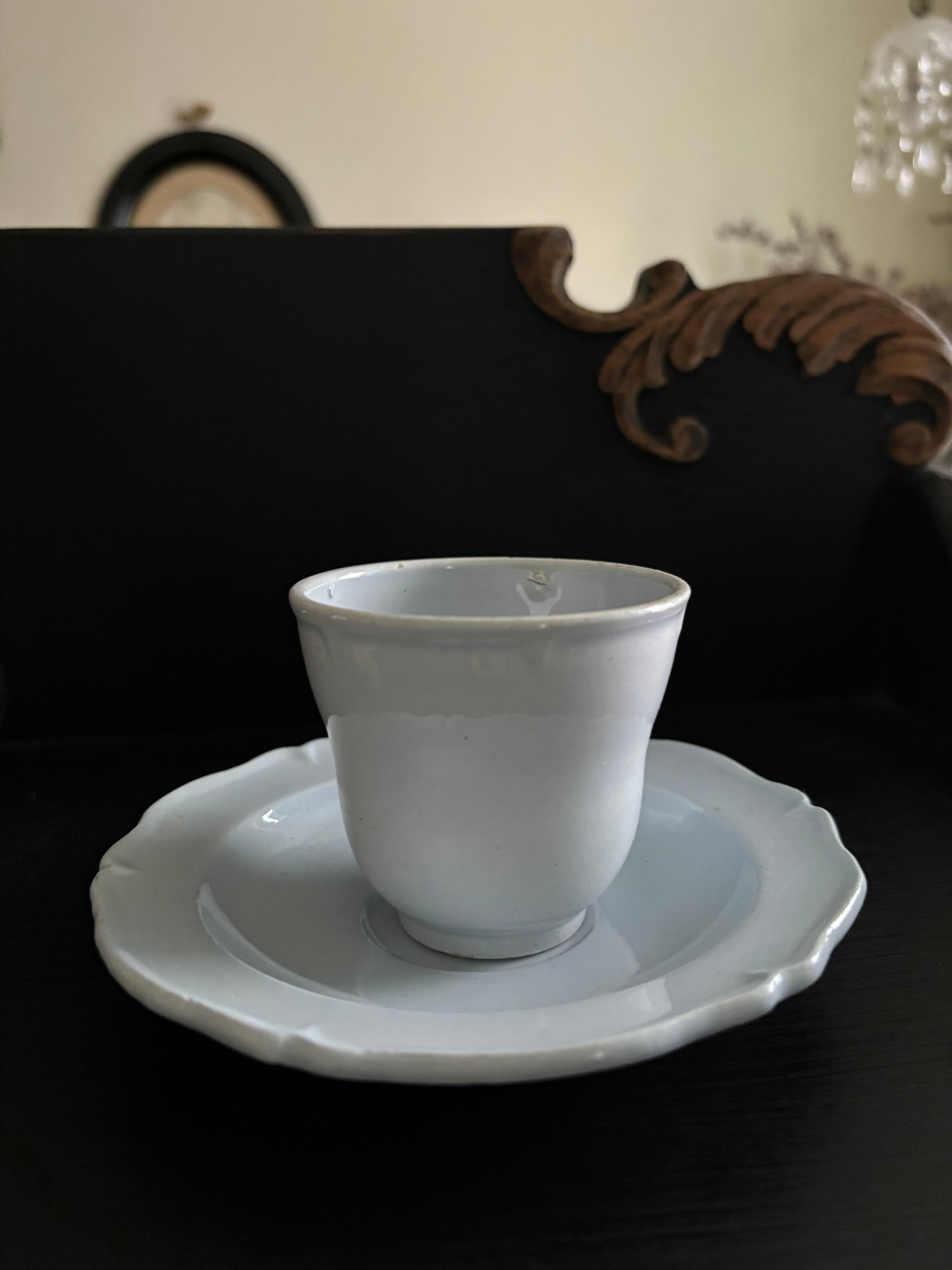 クレイユモントロー *カップ&ソーサー/グレイッシュブルー 花リム コーヒーカップ 240702