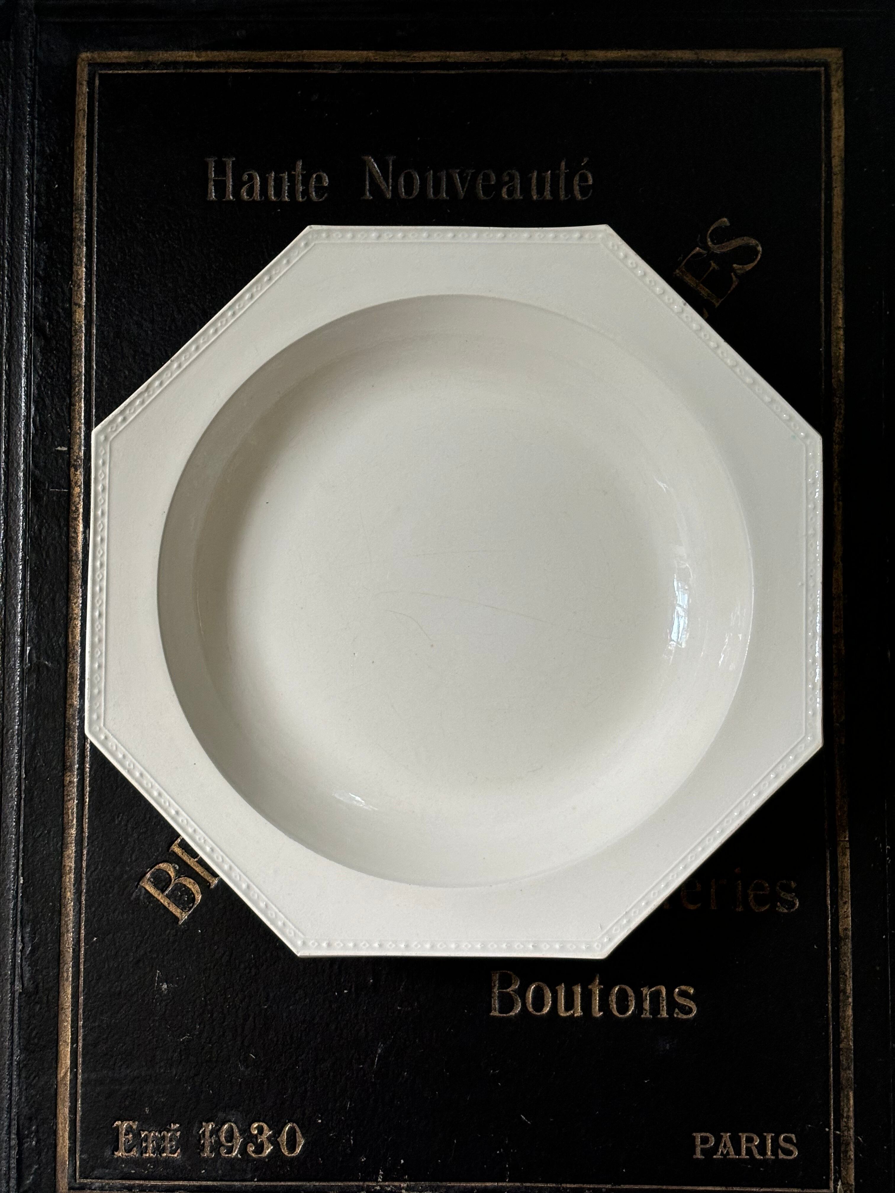 人気のオクトゴナルですが、こちらはモントローと合併する前の19世紀前半のクレイユ窯の白い深皿になります。