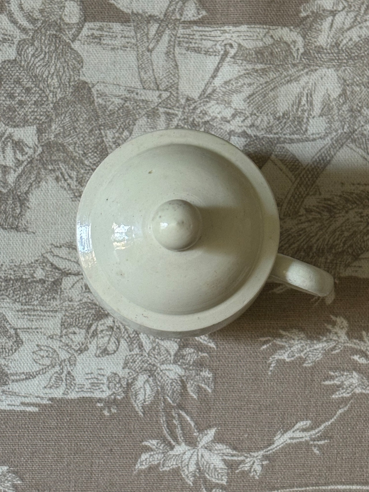 窯印はありませんが19世紀初期のモントローあたりのファイアンスフィーヌと思われます。