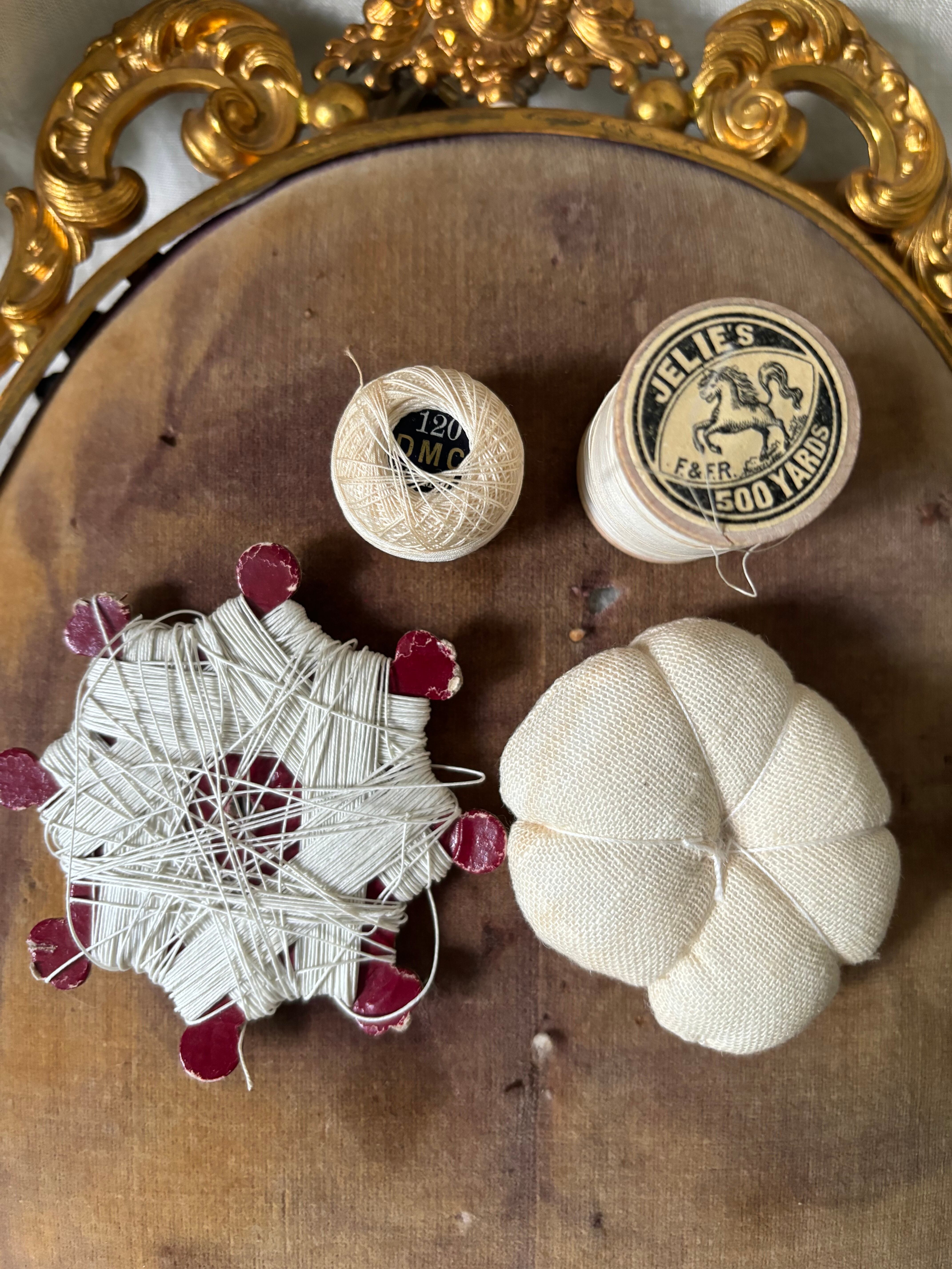 単品2,000円位の糸巻きなど、アンティーク,ヴィンテージレースやメルスリーたちモリモリ30数点の"レース屋さん"