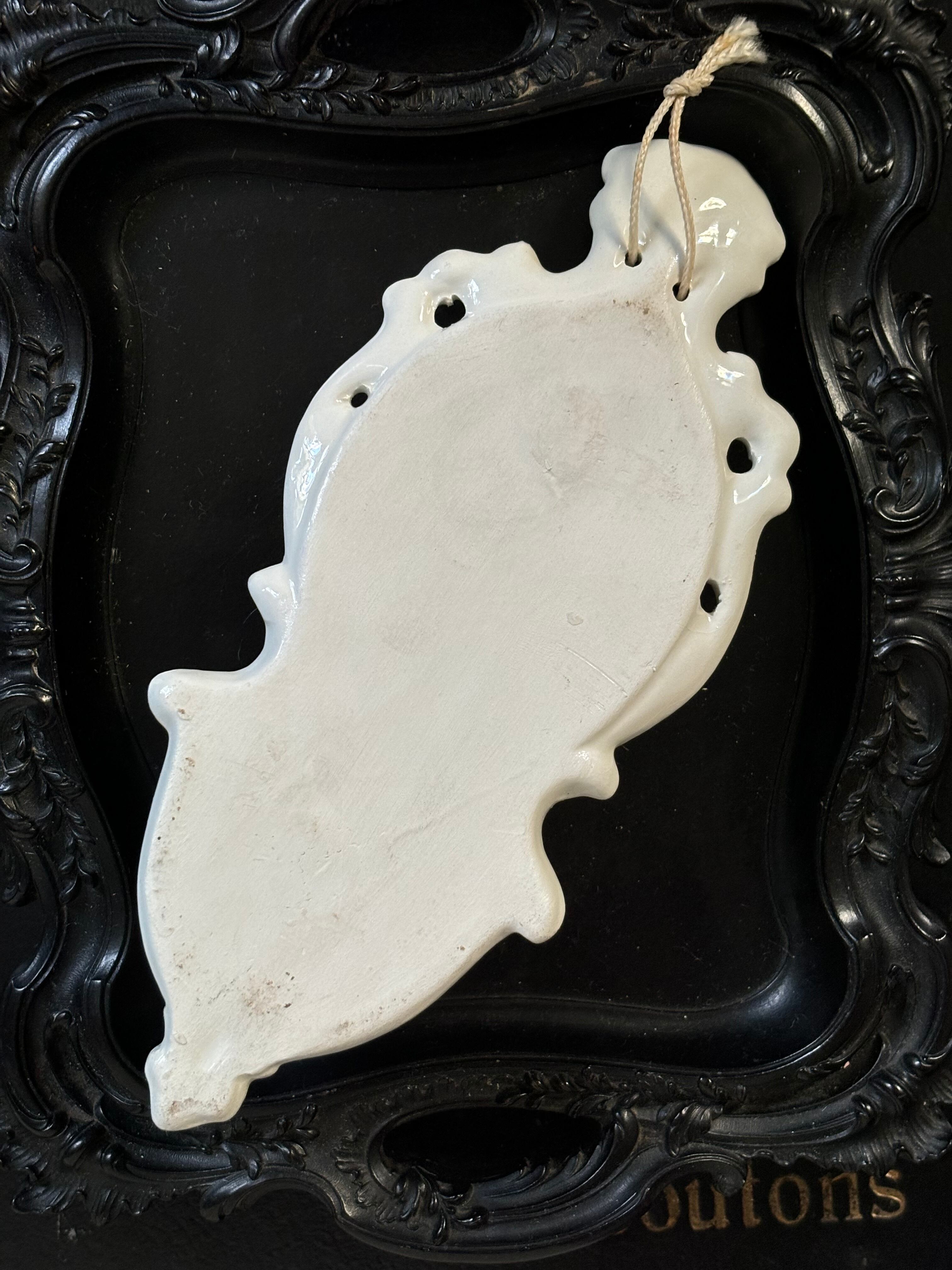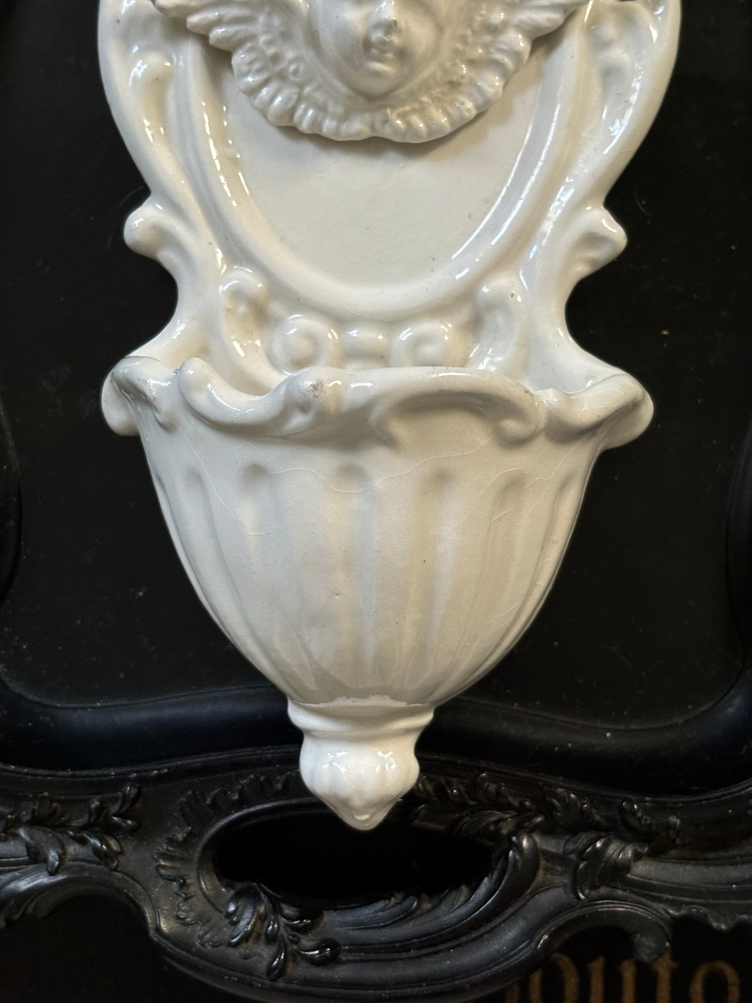 赤ちゃんのお守りとしてアイボリーのクロスやブローチなどにもみられる、美しい天使の聖水盤です。こちらはイケメン天使君?ですよね♪